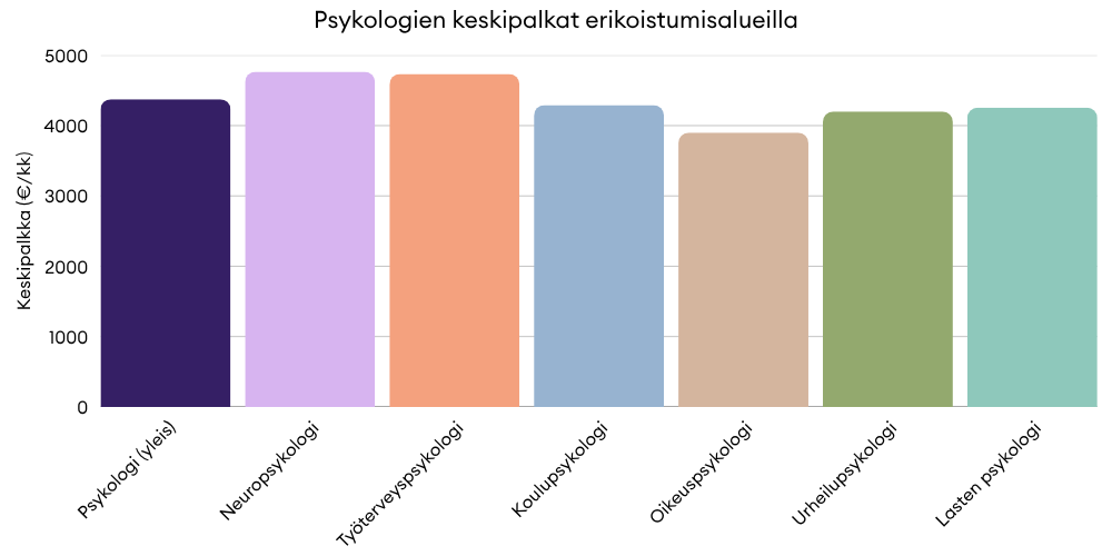 Psykologin palkka riippuu vahvasti erikoistumisesta ja siitä, millä sektorilla työnantaja toimii. Alla käsitellään yleisimmät erikoisalat ja niiden palkat.
